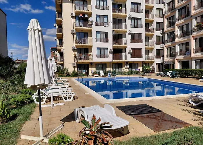 - ❓Gibt es in der 2 Zimmer Wohnung In Sunny Beach ein Schwimmbad?Ja, es gibt einen saisonal betriebenen Außenpool in der 2 Zimmer Wohnung In Sunny Beach.